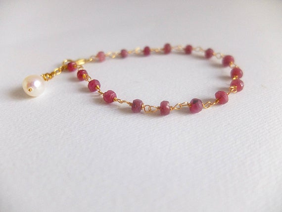 At a Great PriceAAA++ Rare Quality Gold filled dainty Stacking Bracelet,Ruby Gemstone Faceted Rondelle Bracelet,red raw ruby rosary style bracelet,freshwater dangle pearl ruby 3 mm Code- TJH71