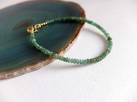 AAA++ Rare Quality Green Emerald Bracelet,Delicate Emerald Gemstone Bracelet,Dainty Emerald Stacking Bracelet in Gold filled green Colombian Emerald bracelet Code- TJH115