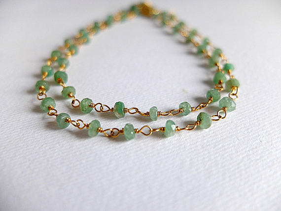 AAA++ Rare Quality Green Emerald Necklace Gold filled Genuine Emerald Necklace Real raw Emerald Necklace May Birthstone Precious Emerald Jewelry,rosary style 2- 3 mm Code- TJH129