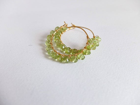 AAA++ Rare Quality Green Peridot earrings hoop gemstone golf filled hoop wire wrapped earring boho hoop beaded earring Peridot jewelry faceted natural Peridot 2.5-3mm Code- TJH211