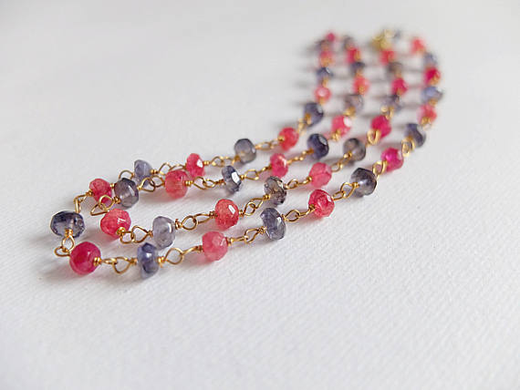 At a Great PriceAAA++ Rare Quality Iolite and raspberry red agate roundels necklace,handmade with Gold filled wire,multi gemstone necklace, red blue gemstone, Gold filled 3/4 mm Code- TJH174