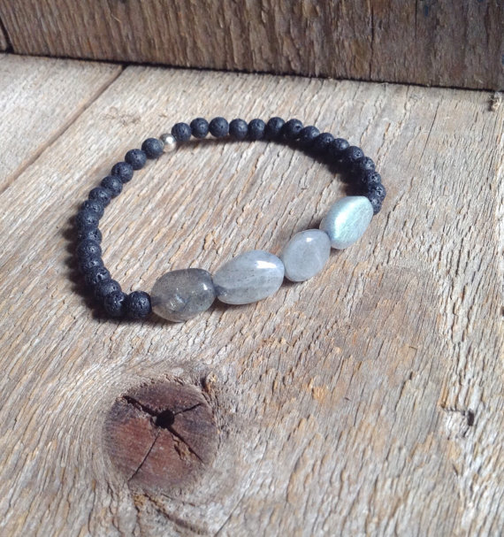 AAA++ Rare Quality Labradorite Bracelet/ Lava Stone Bracelet/ Stacking Bracelet/Aromatherapy/ Crystal Bracelet 5mm 7" Strand. Code- TJH249