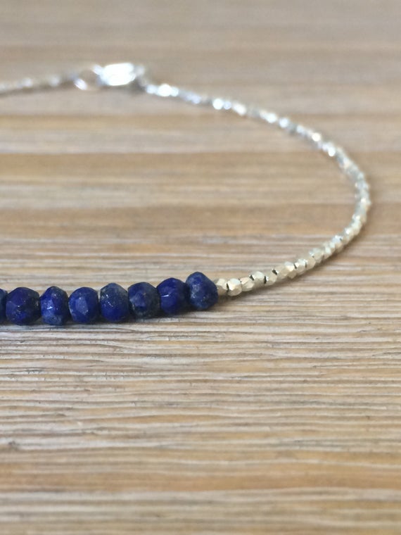 AAA++ Rare Quality Lapis Lazuli and Karen Hill Tribe Silver Plated Beads Bracelet, Beaded bracelet, Gemstone bracelet 2-3 mm Code- TJH34