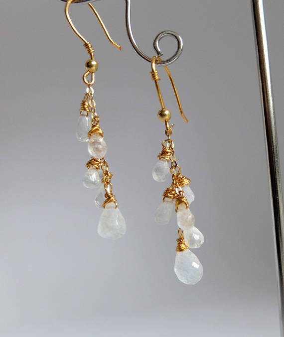 At a Great PriceAAA++ Rare Quality Long,gemstone drops cascade,Moonstone earrings, genuine rainbow moonstone Gold filled,Moonstone Earrings Cluster Earrings Cascade Earrings 8-9 mm Code- TJH199