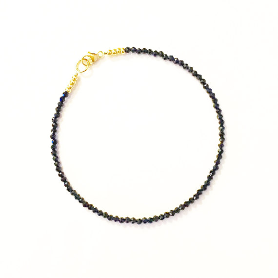 At a Great PriceAAA++ Rare Quality Micro Black Spinel and Gold Bracelet //gemstone bracelet //black gemstone //gifts for women //gemstone jewellery //Valentines day 2mm 17.5cm Code- TJH271