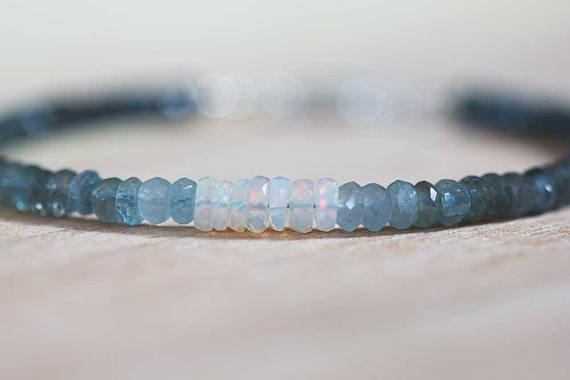 At a Great PriceAAA++ Rare Quality Moss Aquamarine Bracelet with Welo Opal, Delicate Ethiopian Opal Jewelry, Beaded Shaded Jewelry, Sterling Silver Platedor Rose Gold Filled 4mm 7 inches Code- TJH491