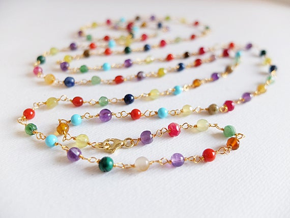At a Great PriceAAA++ Rare Quality Multi Gemstone colorful,long necklace,Gold filled,Multi-way chain necklace made from colored mixed gemstones,double strand necklace,gemstone 4 mm-5 mm Code- TJH143