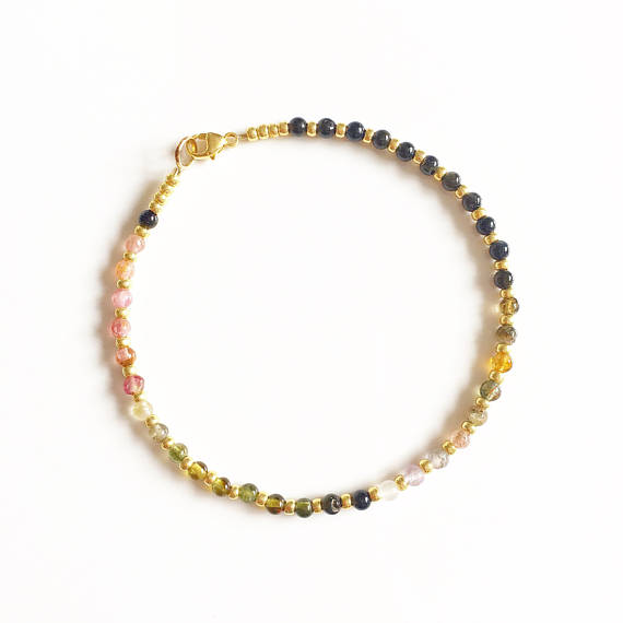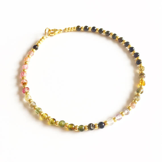 At a Great PriceAAA++ Rare Quality Multicoloured Tourmaline and Gold Semi Precious Bracelet //Tourmaline bracelet //gifts for her //Gemstone bracelet //Rainbow gemstone //Gold 3mm 17.5cm Code- TJH280