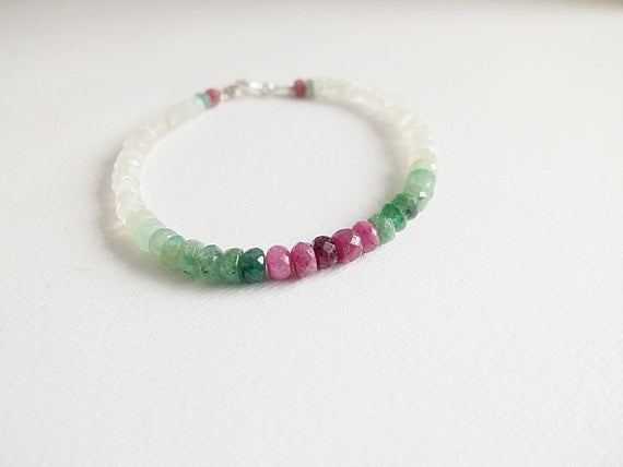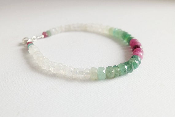 At a Great PriceAAA++ Rare Quality Multigem ombre bracelet !Ombre moonstone Gemstone Bracelet Faceted Multi-Gemstone Rainbow Ruby, Emerald, moonstone, ombre stacking 4 mm Code- TJH63