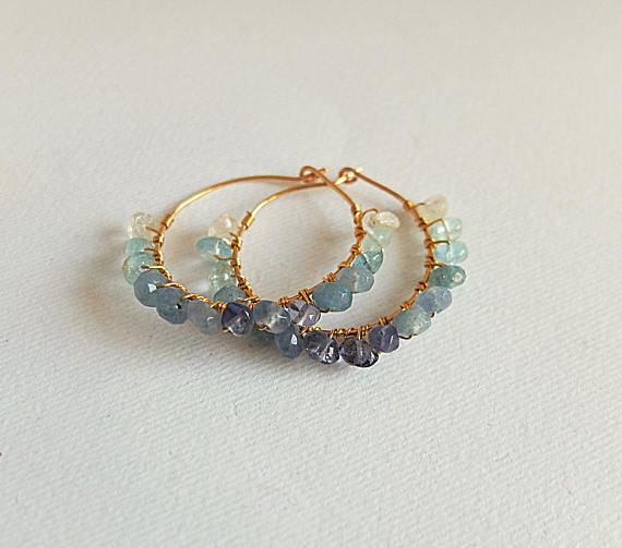 At a Great PriceAAA++ Rare Quality Ombre Aquamarine earrings hoop gemstone Gold filled hoop wire wrapped earring boho hoop beaded earring shaded aquamarine jewelry,Gold filled 4 mm Code- TJH200