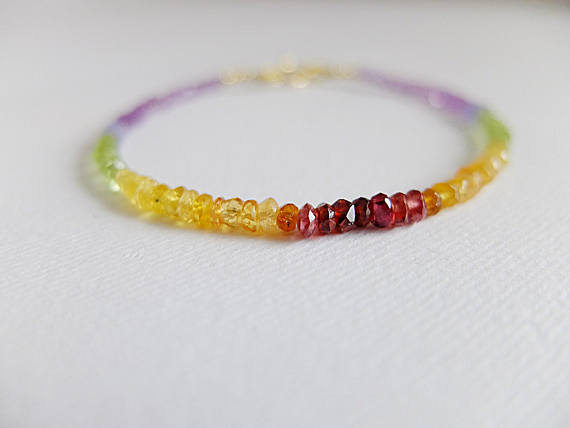 AAA++ Rare Quality Padparadscha Sapphire, Yellow Sapphire Bracelet,Multi Stone,amethyst Ombre bracelet, yellow orange green, stacking,minimalist,garnet 2 mm Code- TJH94