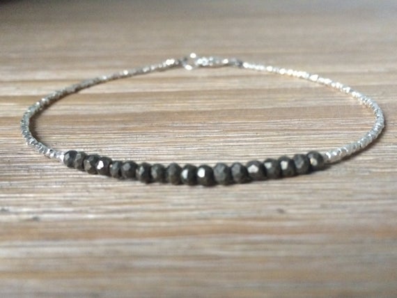 At a Great PriceAAA++ Rare Quality Pyrite and Fine Silver Plated Bracelet , Beaded bracelet, Gemstone bracelet 3-3.5 mm Code- TJH37