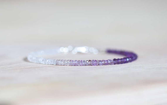 At a Great PriceAAA++ Rare Quality Rainbow Moonstone, Amethyst & Purple Sapphire Bracelet, Delicate Shaded Ombre Sapphire Jewelry, Sterling Silver PlatedRose Gold Fill 3-3.5mm 7 inches Code- TJH493