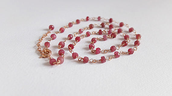 At a Great PriceAAA++ Rare Quality Red Ruby Necklace, Ruby Rosary Style Necklace, Rose Gold filled chain and clasp, chain links, delicate ruby rose Gold filled necklace 3-4 mm Code- TJH149