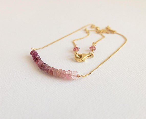 At a Great PriceAAA++ Rare Quality Sale of pink shaded tourmaline pink tourmaline necklace,genuine tourmaline,Gold filled minimalist jewelry,ombre beaded necklace, ink bar 3.5mm Code- TJH239