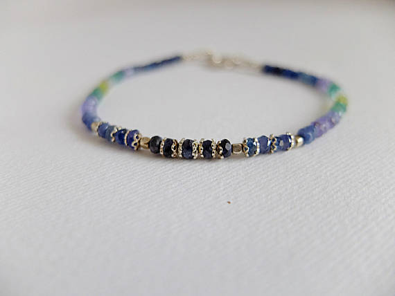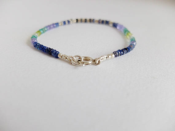 At a Great PriceAAA++ Rare Quality Sapphire Bracelet,Genuine Blue Sapphire,Ombre shaded sapphire,Ombre Gemstone Bracelet,Blue and green Ombre Bracelet,tanzanite apatite 2 mm Code- TJH108