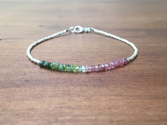 At a Great PriceAAA++ Rare Quality Shaded Watermelon Tourmaline and Karen Hill Tribe Silver Plated Bracelet , Beaded bracelet, Gemstone bracelet, October Birthstone bracelet 2.5mm Code- TJH10