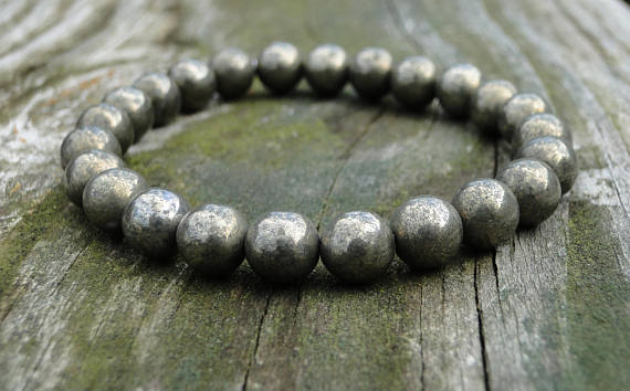 At a Great PriceAAA++ Rare Quality Silver PlatedPyrite Bracelet | Gemstone Bracelet | Mens Bracelet | Metal Stone Bracelet | Womens Bracelet | Beaded Bracelet | Fools Gold 8mm Code- TJH338