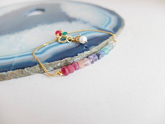 At a Great PriceAAA++ Rare Quality Skinny Bar Bracelet,Dainty Gemstone Bracelet,Natural Delicate Chain Bracelet:Gold Filled, Stone bracelet Delicate Bar beaded bracelet, Gold 2-3 mm Code- TJH80
