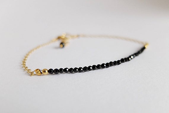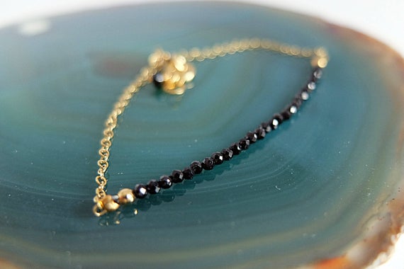 At a Great PriceAAA++ Rare Quality Skinny Bar Bracelet,Dainty Gemstone Bracelet,sparkling black gemstone Gold Filled,Black spinel dainty bracelet,black spinel minimalist Gold 2 mm Code- TJH59
