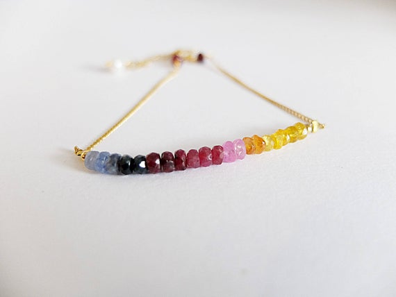 At a Great PriceAAA++ Rare Quality Skinny Bar Bracelet,Dainty Gemstone Bracelet,sparkling multi sapphire Gold Filled,sapphire dainty bracelet,yellow , pink, blue sapphire bar 3 mm Code- TJH48