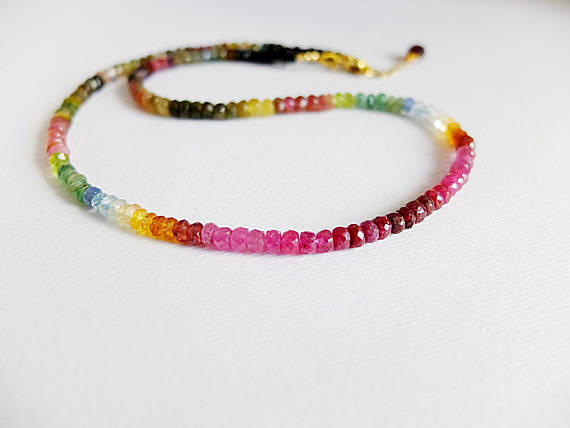 At a Great PriceAAA++ Rare Quality Watermelon Tourmaline necklace with rubies,Garnet,Citrine,multi gemstone necklace,multicolor shaded necklace,ombre necklace, ruby Tourmaline 3/4 mm Code- TJH147