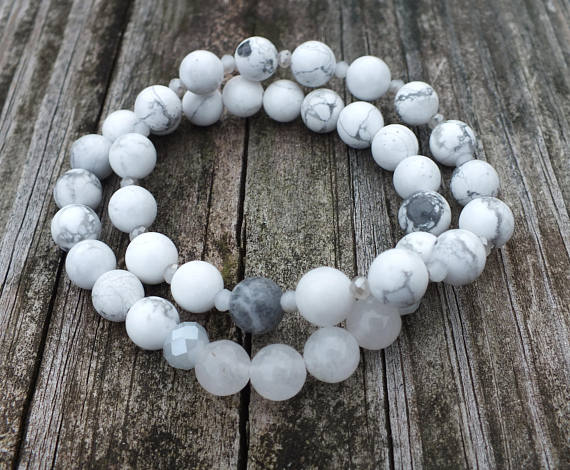 At a Great PriceAAA++ Rare Quality White Howlite Double Set | Stacking Bracelets | Marble Bracelet | Yoga Bracelets | Womens Bracelet | Mens Bracelet | Quartz Bracelet 8mm 7" Strand. Code- TJH316