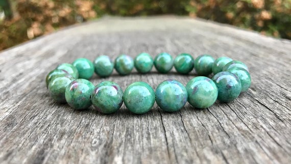 At a Great PriceAnniversary Gift 11mm Stretchable Green Ruby Zoisite Bracelet Round, Smooth 7.5" for mens, womens, gf, bf & Adult.