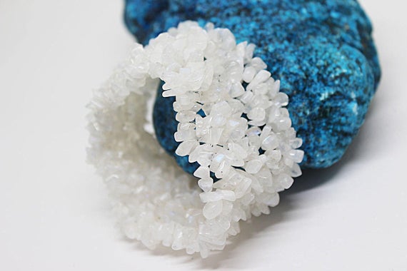 At a Great PriceAnniversary Gift 3x4 mm Stretchable white White Rainbow Moonstone Bracelet Chip Shape, Smooth 7" for mens, womens, GF, BF, Adults.