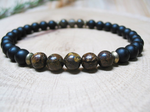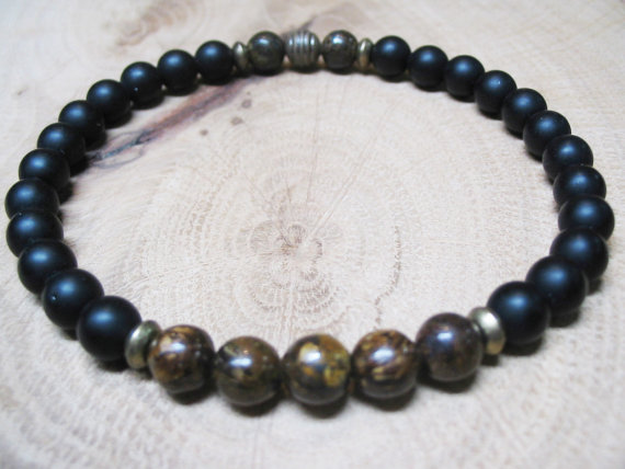 At a Great PriceAnniversary Gift 6mm Stretchable brown & Black Bronzite & Black Onyx Bracelet Round, Smooth 7" for mens, womens, GF, BF, Adults.