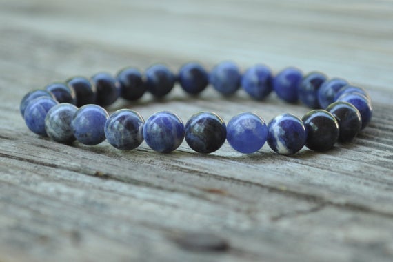 At a Great PriceAnniversary Gift 8mm Stretchable blue Sodalite Bracelet Round, Smooth 7" for mens, womens, GF, BF, Adults.