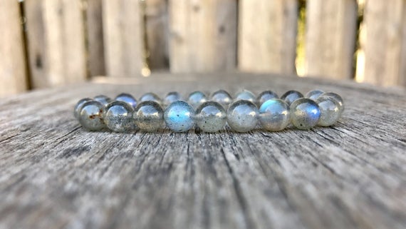 At a Great PriceAnniversary Gift 8mm Stretchable Gray Labradorite Bracelet Round, Smooth 7" for mens, womens, gf, bf & Adult.