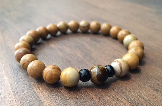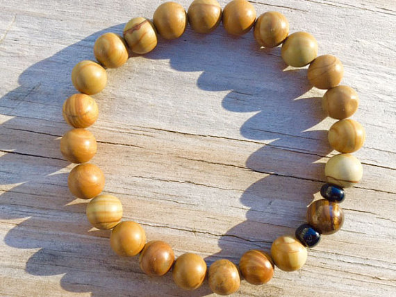 At a Great PriceAnniversary Gift 8mm Stretchable Yellow Wood grain & tigers eye Bracelet Round, Smooth 7" for mens, womens.