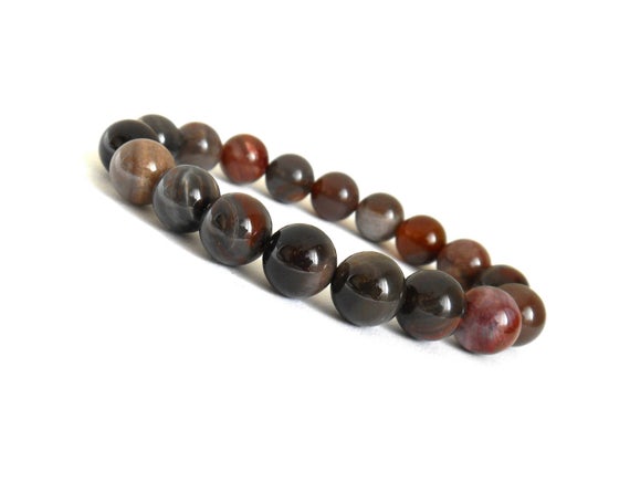 At a Great PriceAnxiety Gemstone 10mm Multi Colour Petrified Wood Stretchable Bracelet Round, Smooth 18cm for mens, womens, gf, bf and adults.