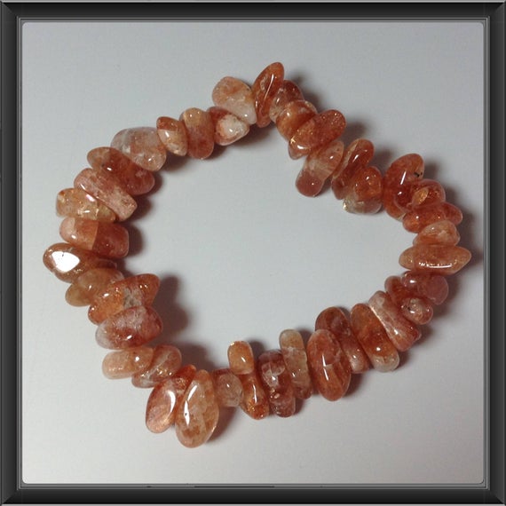 At a Great PriceAnxiety Gemstone 10x14mm Stretchable Orange Sun Stone Bracelet Chips, Smooth 7" for mens, womens, gf, bf & Adult.
