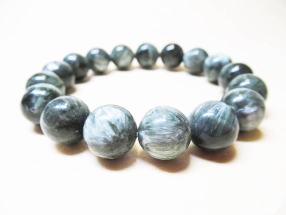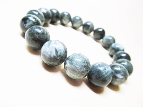 At a Great PriceAnxiety Gemstone 12mm Stretchable green Seraphinite Bracelet Round, Smooth 7.5" for mens, womens, GF, BF, Adults.