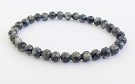 Anxiety Gemstone 8mm Gray LABRADORITE Stretchable Bracelet Round, Smooth 18cm for mens, womens, gf, bf and adults.