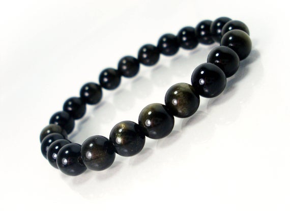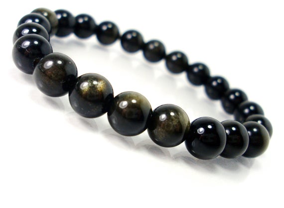 At a Great PriceAnxiety Gemstone 8mm Stretchable Black & Green Obsidian Bracelet Round, Smooth 7" for mens, womens.