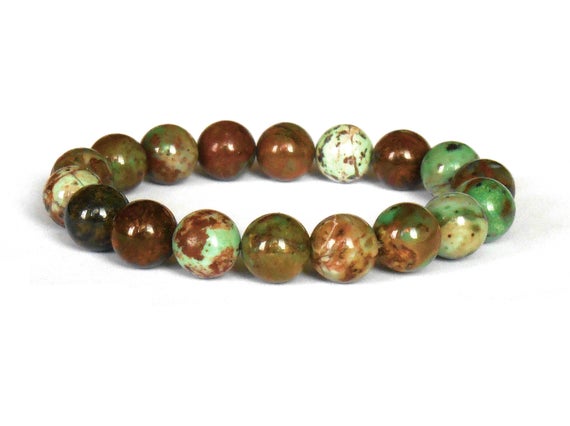 At a Great PriceAnxiety Relief Calming 10mm Multi Colour African Green Opal Stretchable Bracelet Round, Smooth 18cm for mens, womens, gf, bf and adults.