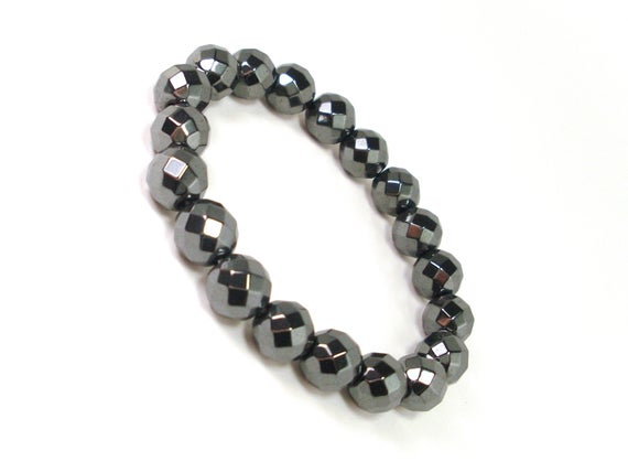 Anxiety Relief Calming 10mm Stretchable Black Hematite Bracelet Round, Smooth 7.5" for mens, womens.