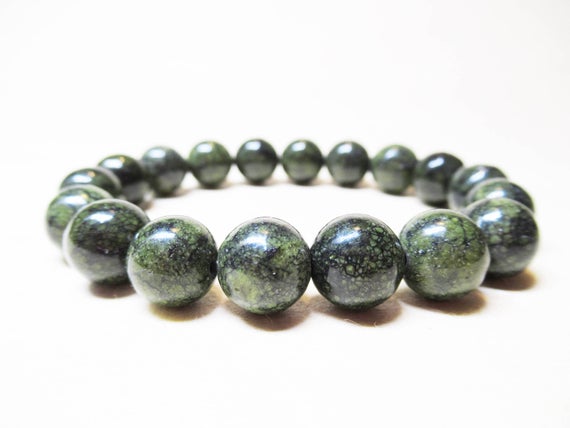 At a Great PriceAnxiety Relief Calming 10mm Stretchable green Russian Serpentine Bracelet Round, Smooth 7.5" for mens, womens, GF, BF, Adults.