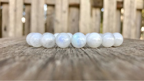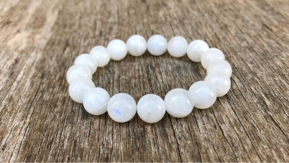 Anxiety Relief Calming 10mm Stretchable White Moonstone Bracelet Round, Smooth 7" for mens, womens, gf, bf & Adult.