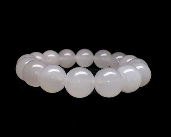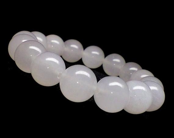 Anxiety Relief Calming 10mm White White Quartz Stretchable Bracelet Round, Smooth 18cm for mens, womens, gf, bf and adults.
