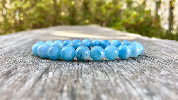 At a Great PriceAnxiety Relief Calming 8mm Stretchable Blue Aquamarine Bracelet Round, Smooth 7" for mens, womens, gf, bf & Adult.