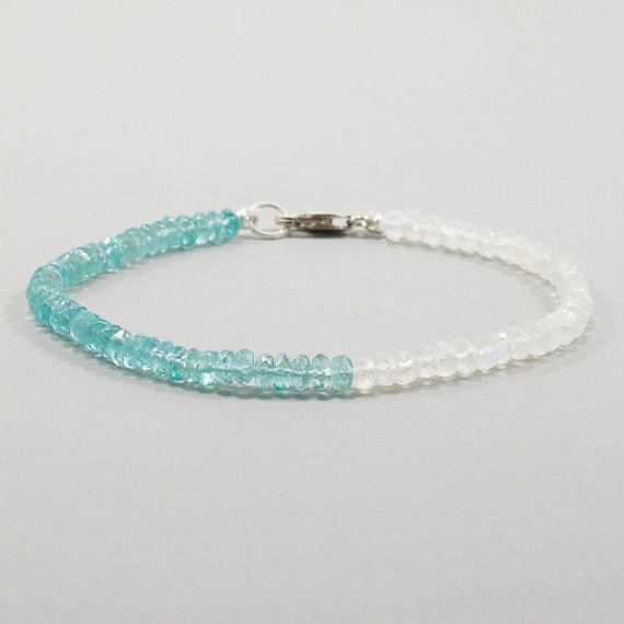 Apatite Moonstone Bracelet, Gemstone, Handmade, Stacking, Sterling Silver, Gift for Her, Women, Mother, Mom, Birthday, White, Blue, Green 3mm Code- WAR6548