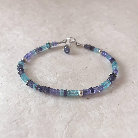 At a Great PriceApatite Tanzanite Iolite Karen Hill Tribe Thai Silver Beaded Bracelet, Sundance Style, Boho Chic, Dainty Bracelet, Layering Bracelet 3-4mm Code- WAR6456