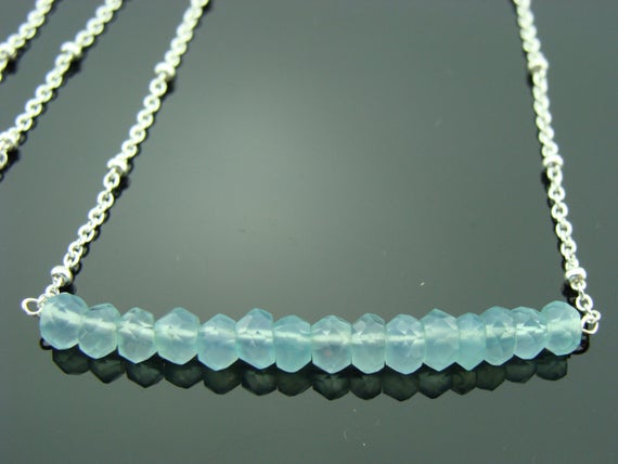 At a Great PriceAqua Blue Chalcedony Sterling Silver Bar Necklace 4mm Code- WAR6589