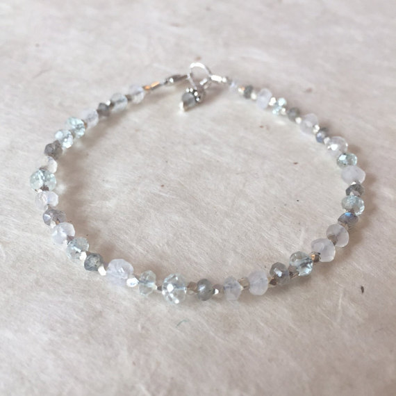 At a Great PriceAquamarine Labradorite Moonstone Karen Hill Tribe Thai Silver Beaded Bracelet, Sundance Style 3-5mm Code- WAR6399