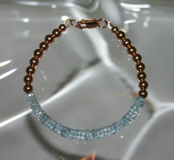 At a Great PriceAQUAMARINE / ROSE GOLD Bracelet...Grade A Micro Facets Aquamarine Stones 5 MM TO 7mm Code- WAR6035