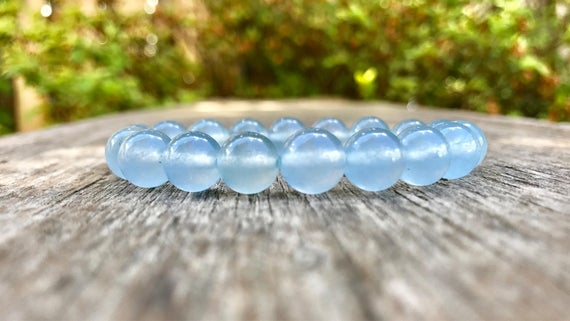 At a Great PriceArtisan Loose 10mm Stretchable Blue Blue Celestine Bracelet Round, Smooth 7.5" for mens, womens, gf, bf & Adult.